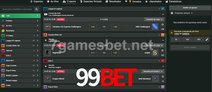 O 99Bet oferece uma grande seleção de opções de apostas em e-sports com probabilidades competitivas